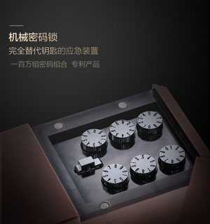 打破“有锁必有钥匙”的传统观念,安全性在行业内具有颠覆性技术创新,借鉴银行金库密码技术,采用瑞士钟表加工工艺,自主研发机械密码锁,六位数密码具有一百万组密码组合,摆脱备用钥匙的制约,防止技术性锁眼开锁