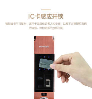 中间按钮+下压把手才能开门 外出上提把手自动反锁,无法 通过猫眼开门,安全有保障